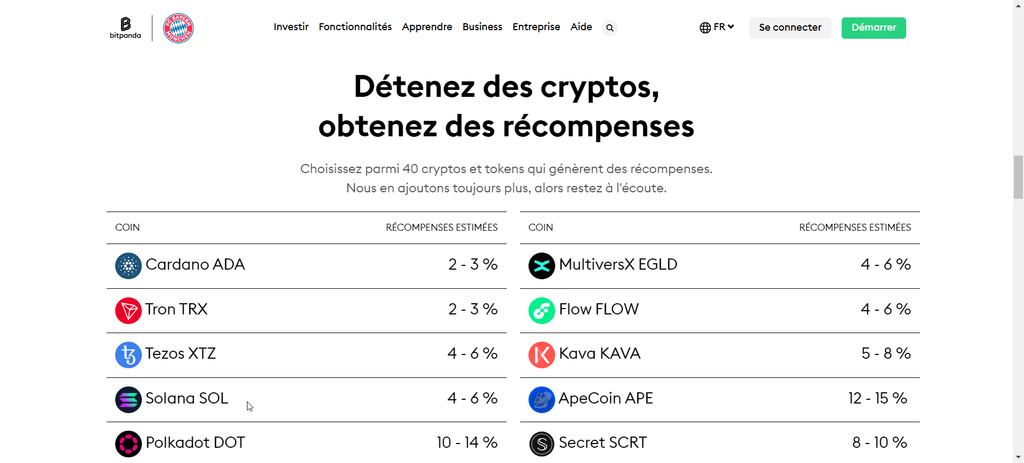 Évidemment, Bitpanda dispose d'un très bon programme de staking et de récompenses. Sa liste est mise à jour régulièrement pour proposer de nouvelles offres de staking.