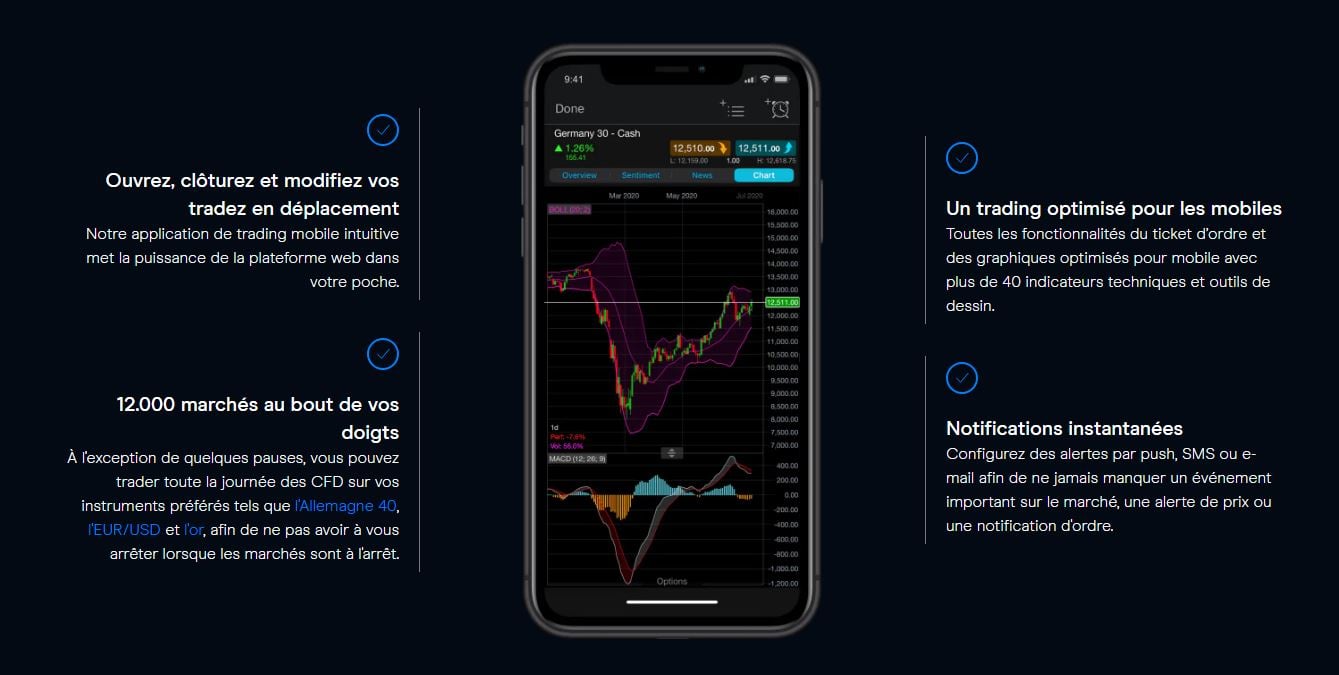 Le courtier a également développé une application de trading à utiliser sur mobile. Cette version de la plateforme web New Generation dispose de la plupart des fonctionnalités de base et a été récompensée en 2021 par ForexBrokers.com.