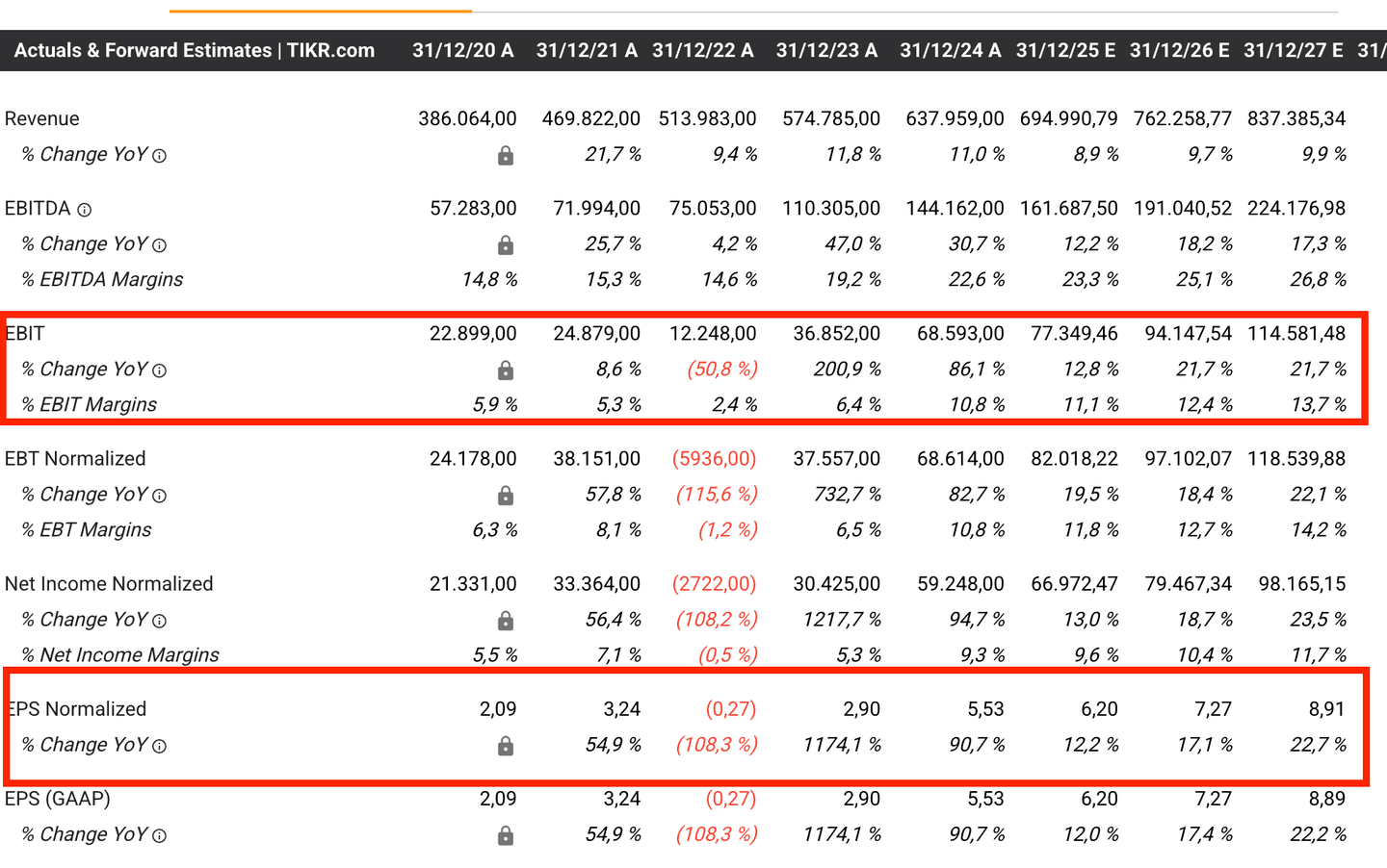 - Bénéfice d'exploitation : Comme vous pouvez le constater, les bénéfices de l'entreprise ont non seulement augmenté (dépassant les attentes), mais de 2023 à 2024, ils ont pratiquement doublé de 100 %, alors que les attentes sont qu'ils augmenteront à nouveau, d'au moins 40 % en 2025.
