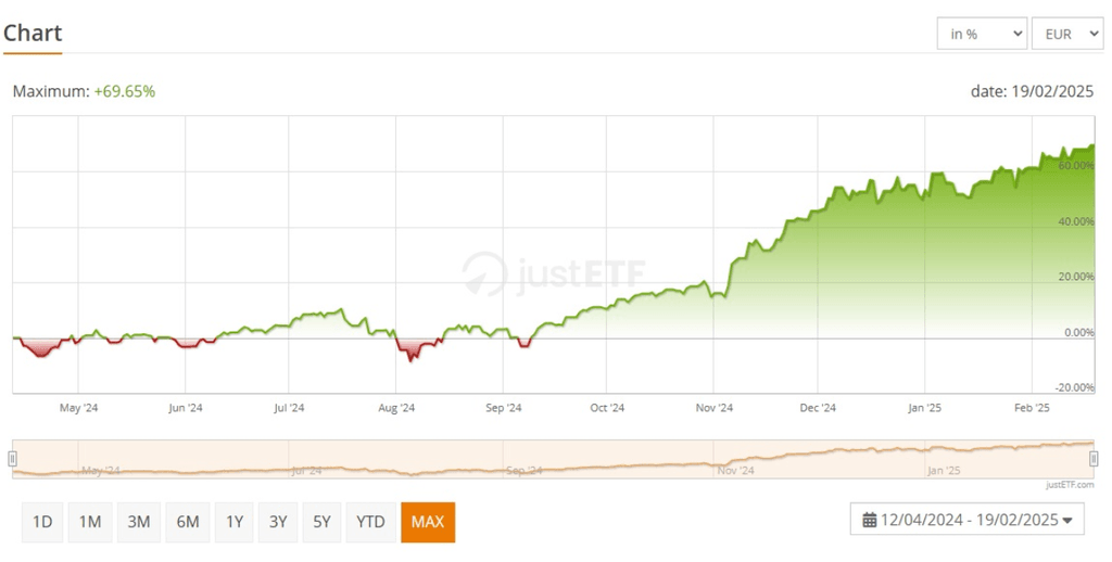 De plus, il a été lancé il y a relativement peu de temps, et bien sûr, avec l'élan final des marchés boursiers à la fin de l'année dernière et au début de celle-ci, il a eu une rentabilité impressionnante de 70% en à peine 7 ou 8 mois.