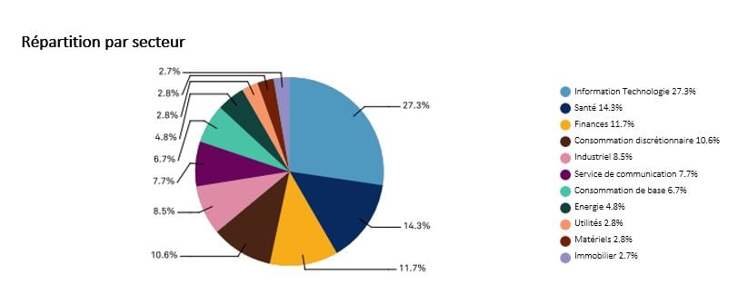 Le secteur technologique représente un peu plus de 30% du S&P500. Voici les poids que chaque secteur a :