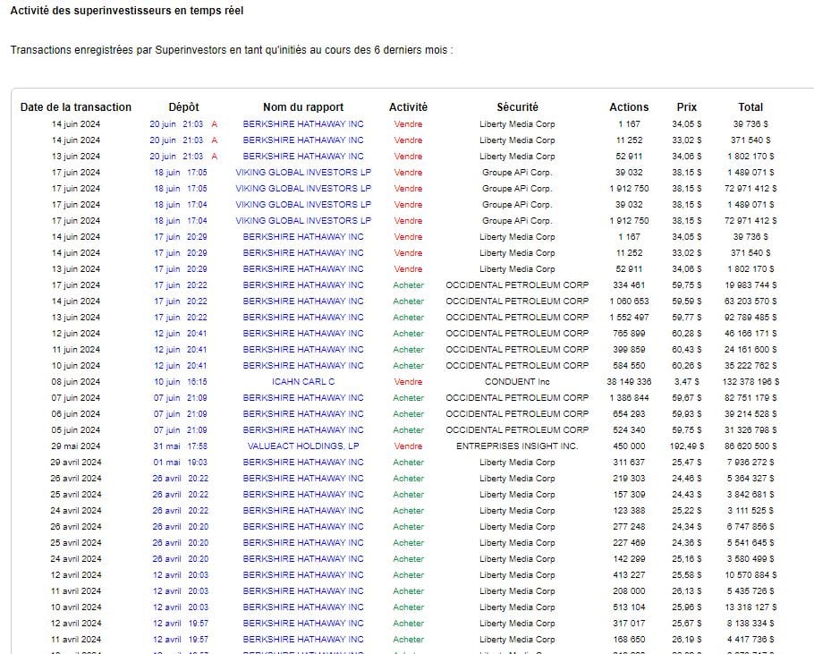 Vous pouvez compléter ces informations avec les données de portefeuille disponibles sur dataroma.com. Cela vous aidera à analyser en détail pourquoi certains achats et ventes importants ont été effectués. Ainsi, vous pourrez mieux comprendre les stratégies derrière ces transactions.