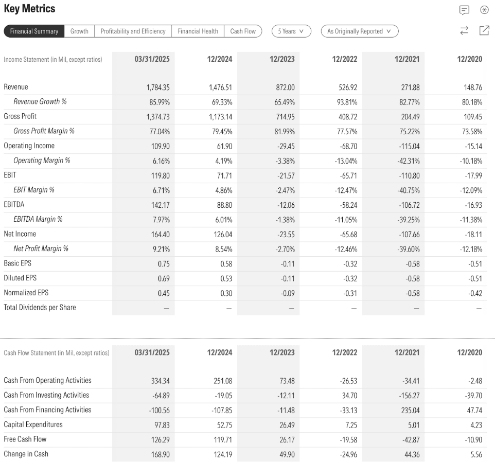 En ce qui concerne la valorisation de Palantir, on pourrait dire que c'est l'un des plus grands excès des dernières années en bourse ; avec un PER de plus de 500, l'entreprise devrait augmenter ses bénéfices de manière exorbitante dans les prochaines années pour commencer à justifier minimalement cette très haute valorisation.