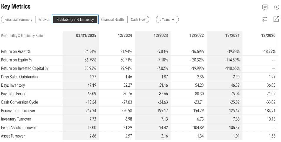 - Return of Invested Capital (ROIC): Il est remarquable de voir comment le retour sur le capital investi dans HIMS est passé de négatif à dépasser 30% en moins de cinq ans: