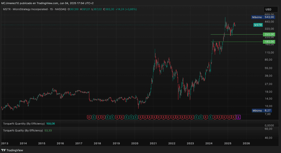 MicroStrategy (MSTR) est une entreprise qui est née avec l'objectif de développer des logiciels pour l'analyse de données (ce dont plus personne ne semble se souvenir aujourd'hui). Cependant, ces dernières années, elle est devenue particulièrement célèbre pour être quelque chose comme la “trésorerie de Bitcoin”.