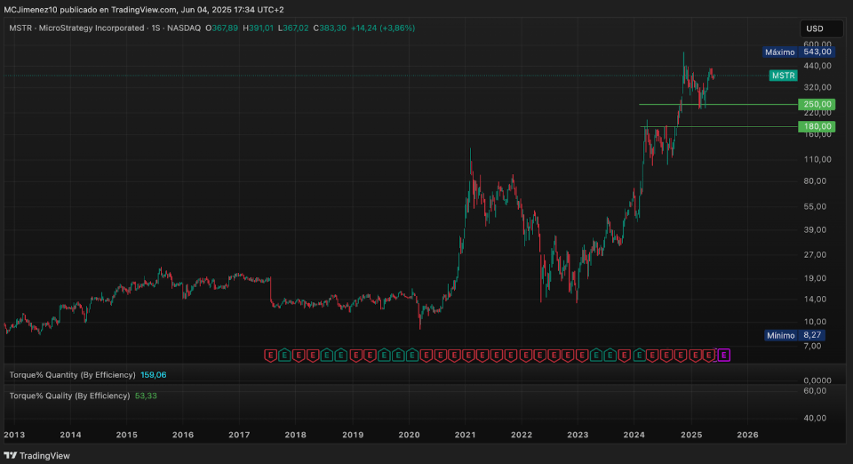 MicroStrategy (MSTR) est une entreprise qui est née avec l'objectif de développer des logiciels pour l'analyse de données (ce dont plus personne ne semble se souvenir aujourd'hui). Cependant, ces dernières années, elle est devenue particulièrement célèbre pour être quelque chose comme la “trésorerie de Bitcoin”.