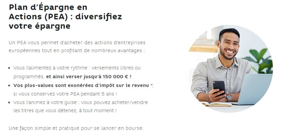 Avec le Plan d’Épargne en Actions (PEA) de Hello Bank!, vous pouvez placer votre argent dans les actions d’entreprises de l’Union européenne (UE) ou de l’Espace économique européen (EEE). Vous pouvez également intégrer à ce Plan des ETF et OPC investis majoritairement (à 75 % au moins) en valeurs d’entreprises européennes.