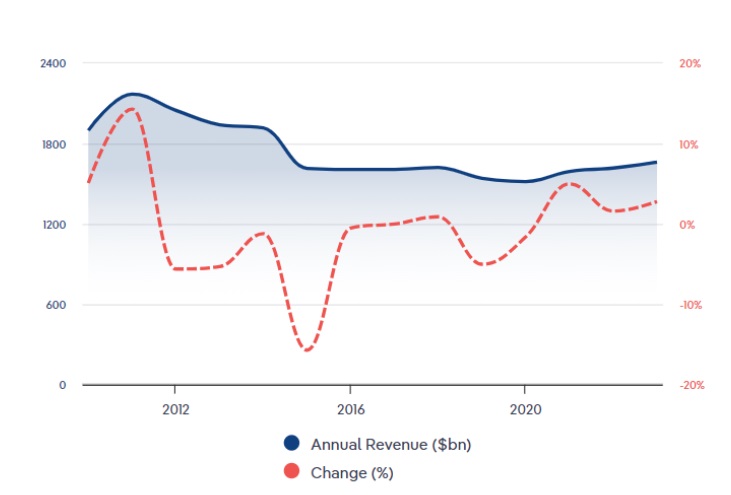 En 2021, avant la guerre en Ukraine, les entreprises de l'industrie de l'armement ont déclaré un chiffre d'affaires record de 564 milliards d'euros se positionnant dans les industries les plus rentables au monde. Et ce, malgré la pandémie, les goulots d'étranglement et d'autres facteurs qui auraient pu affecter leurs revenus.