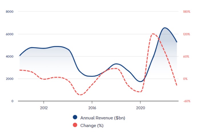 Le secteur de l'énergie a été l'un des protagonistes de 2022 et a continué de l'être en 2023, bien que cette fois-ci avec des baisses de chiffre d'affaires. En fait, il marque le rythme de l'économie mondiale depuis plus de deux décennies, dans une mesure plus ou moins importante.
