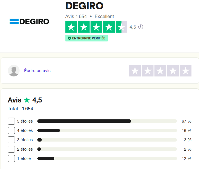 Comme le montrent les avis des utilisateurs sur Trustpilot, les deux courtiers bénéficient d'excellentes évaluations. Les utilisateurs de DEGIRO apprécient particulièrement la simplicité de la plateforme, tandis que ceux d'Interactive Brokers apprécient la diversité des produits et des marchés sur lesquels ils peuvent opérer à travers le monde.