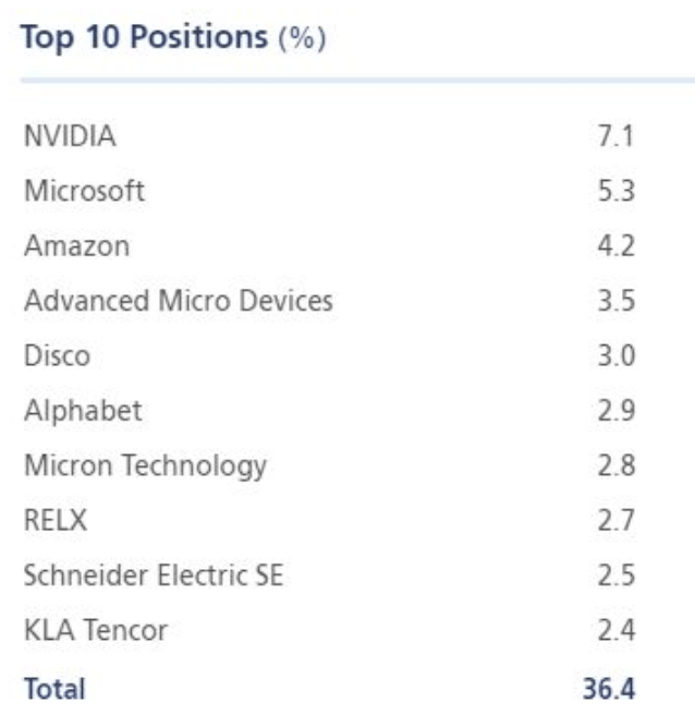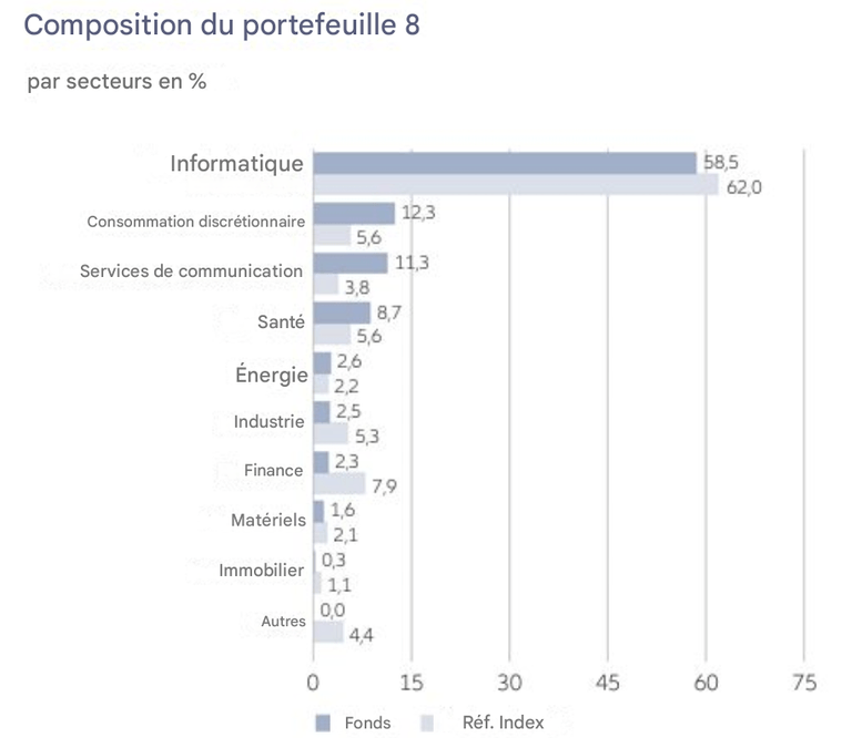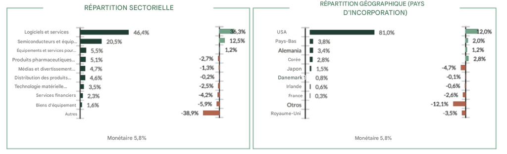L'équipe de gestion effectue une analyse approfondie pour sélectionner les entreprises de plus grande conviction et constituer un portefeuille de 30 à 60 valeurs. Ce fonds offre aux investisseurs une exposition directe à différents domaines, tels que les logiciels, le matériel, les médias Internet, la santé et les secteurs cycliques liés à l'intelligence artificielle.