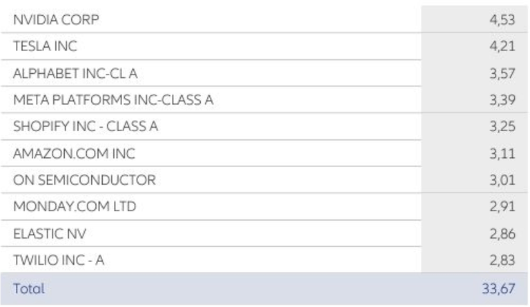 Il a un portefeuille concentré de 34 valeurs (maximum 35), donc les entreprises sélectionnées sont de très haute conviction. Ils disposent d'un univers d'investissement de 300 entreprises et pour identifier les meilleures idées, ils utilisent un filtre quantitatif et fondamental, en tenant compte du cash flow, de l'endettement, de la croissance, etc.