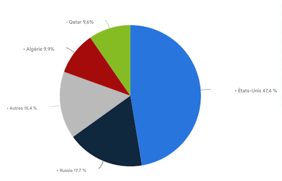 En France, le gaz naturel est importé de plusieurs pays. Voici les principaux fournisseurs :