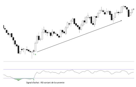 | RSI > 70 | Surachat | Vente ou prise de bénéfices |