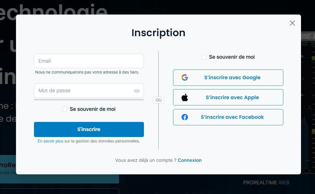 Étape 1. Créer un compte ou se connecter à ProRealTime