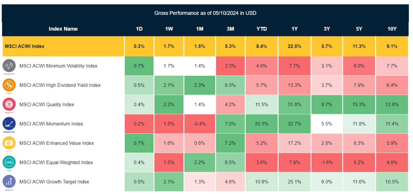 Par style d’investissement, le graphique MSCI suivant montre ceux qui ont obtenu les meilleurs résultats tout au long de l’année.