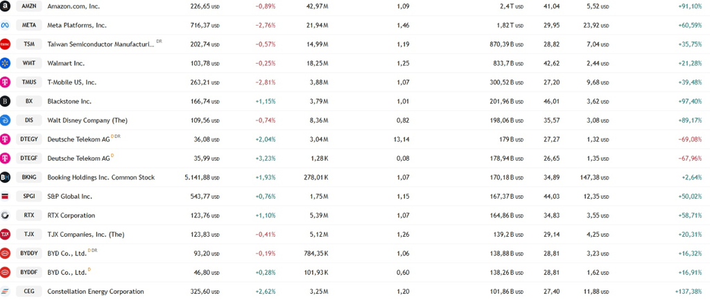 Pour sa simplicité et sa fluidité, Investing.com est l'un des stock screeners les plus utilisés par les investisseurs et traders, tant débutants qu'experts. Sur cette plateforme, vous pourrez sélectionner facilement les actions par pays, marchés, secteurs, industrie, type d'actif, PER, variation sur un an, capitalisation boursière, volume de négociation, volatilité, prix, dividendes et plus encore.